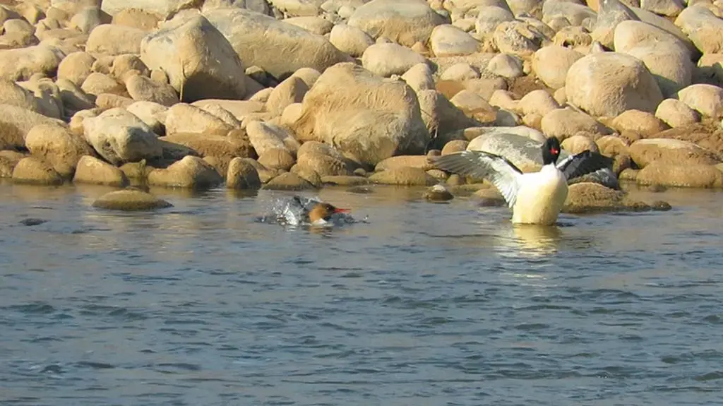 中华秋沙鸭是典型的肉食性潜水鸟,它们主要捕食水生昆虫和小型鱼类,也摄食虾、蟹等甲壳类。成鸭擅长潜水追捕鱼类以获取能量,而雏鸭则会更多地取食昆虫,这种对食物的高度专一性,使其生存完全依赖于清澈寒冷、鱼虾丰富的原始溪流以及周边保存完好的森林(提供繁殖树洞)。