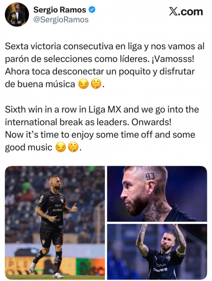 今日拉莫斯更新社媒,晒出自己的比赛照,并用西英双语配文写道: